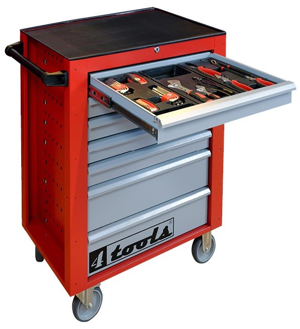 - Dielenský pojazdný vozík na náradie 4tools 3motion, RAL 3000/7001