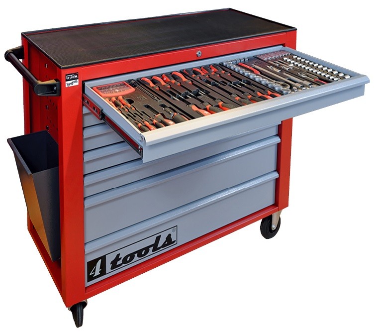 - Dielenský pojazdný vozík na náradie 4tools 5motion, RAL 3000/7001
