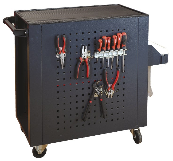 Dielenský vozík je vyrobený z kvalitného oceľového plechu s hrúbkou 0,7- 2 mm. Vrchný kryt vozíka vyrobený z ABS plastu. Perforácia bokov umožňuje zavesenie príslušenstvo na boky vozíka.