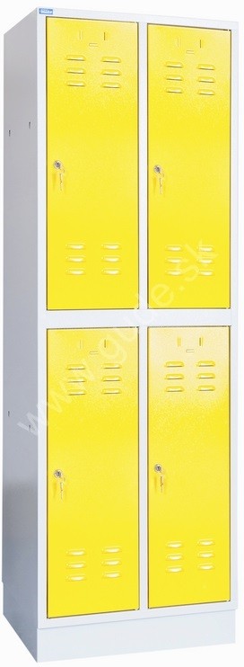 - Kovová šatníková skriňa 2-dielna, 4-dverová, na sokli, RAL 7035/1021, KÓD