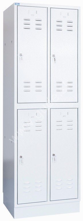 - Kovová šatníková skriňa 2-dielna, 4-dverová, na sokli, RAL 7035/7035, PET