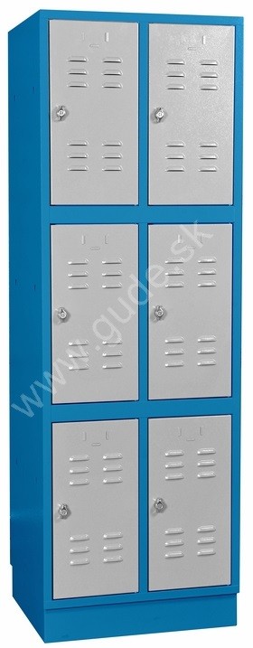 - Kovová šatníková skriňa 2-dielna, 6-dverová, na sokli, RAL 5015/7001, KÓD