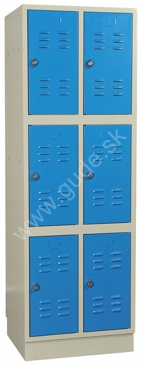 - Kovová šatníková skriňa 2-dielna, 6-dverová, na sokli, RAL 7035/5015, KÓD