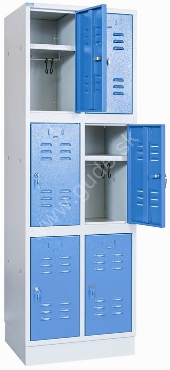 Kovová šatníková skrinka 2-dielna / 6-dverová, na sokli