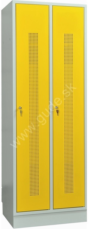 - Kovová šatníková skriňa 2-dverová, perforované dvere, na sokli, RAL 7035/1021, KÓD