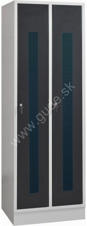 Kovová šatníková skrinka GS2 600 na sokli s perforovanými dverami
