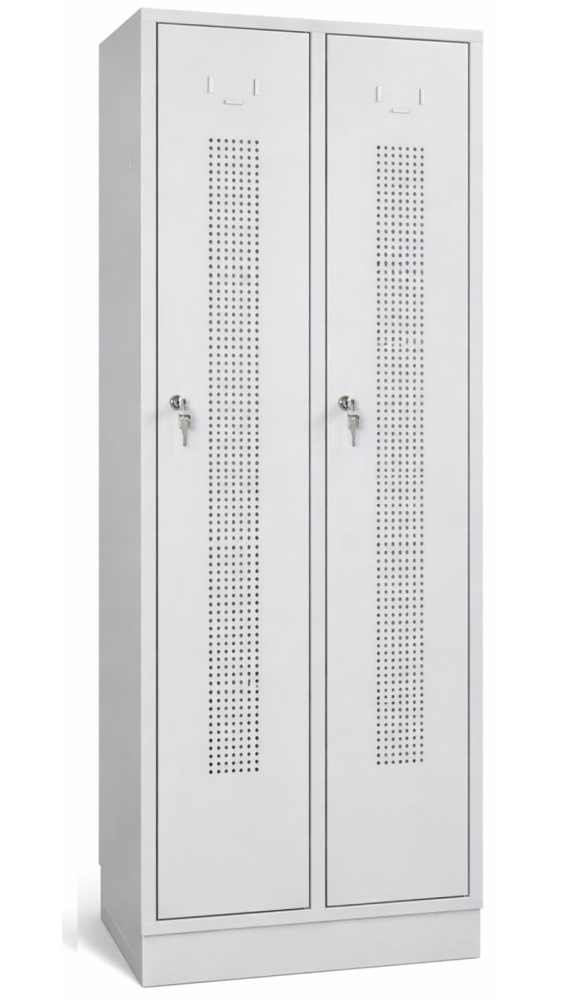 - Kovová šatníková skriňa 2-dverová, perforované dvere, na sokli, RAL 7035/7035, CYL