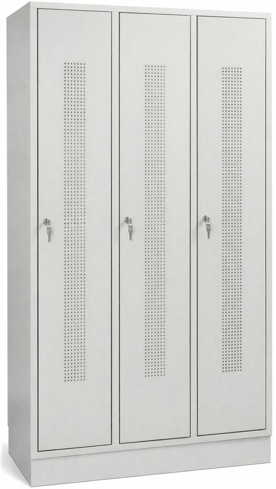 - Kovová šatníková skriňa 3-dverová, perforované dvere, na sokli, RAL 7035/7035, KÓD