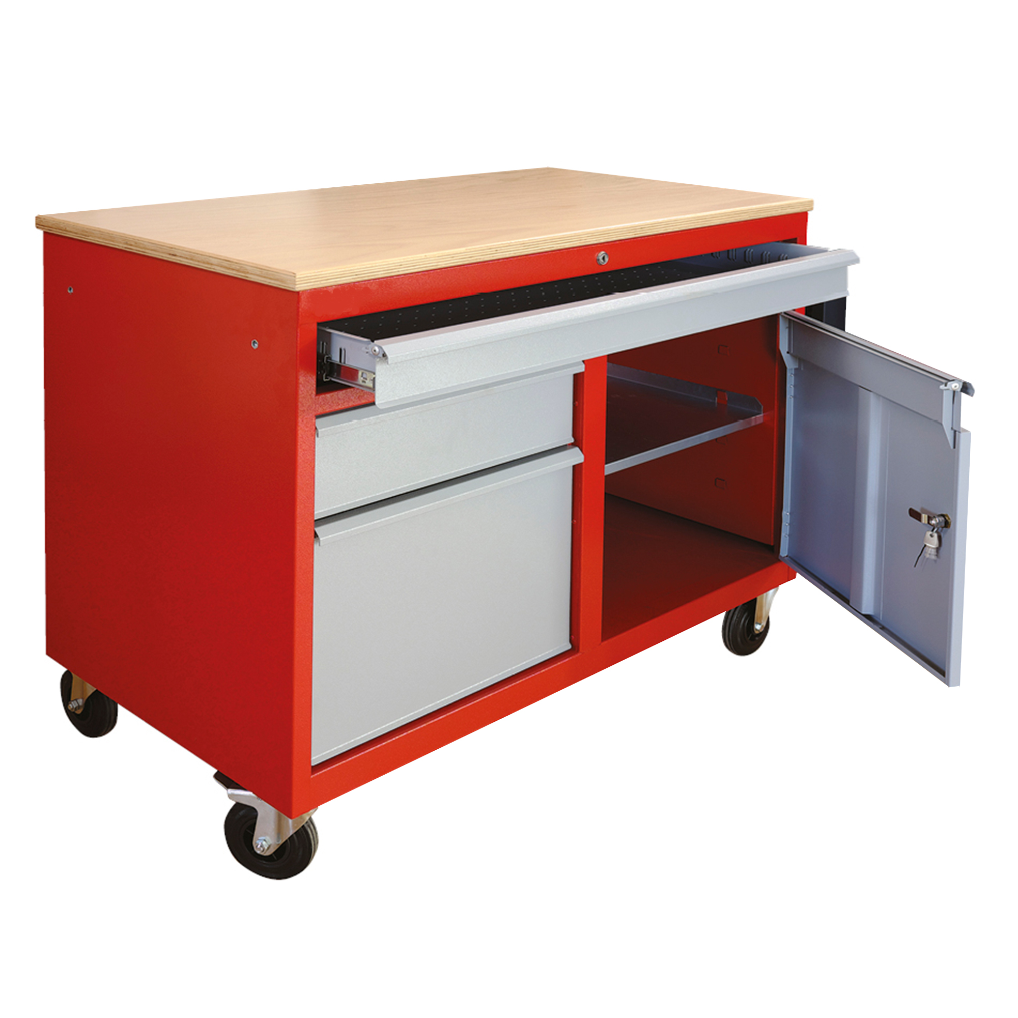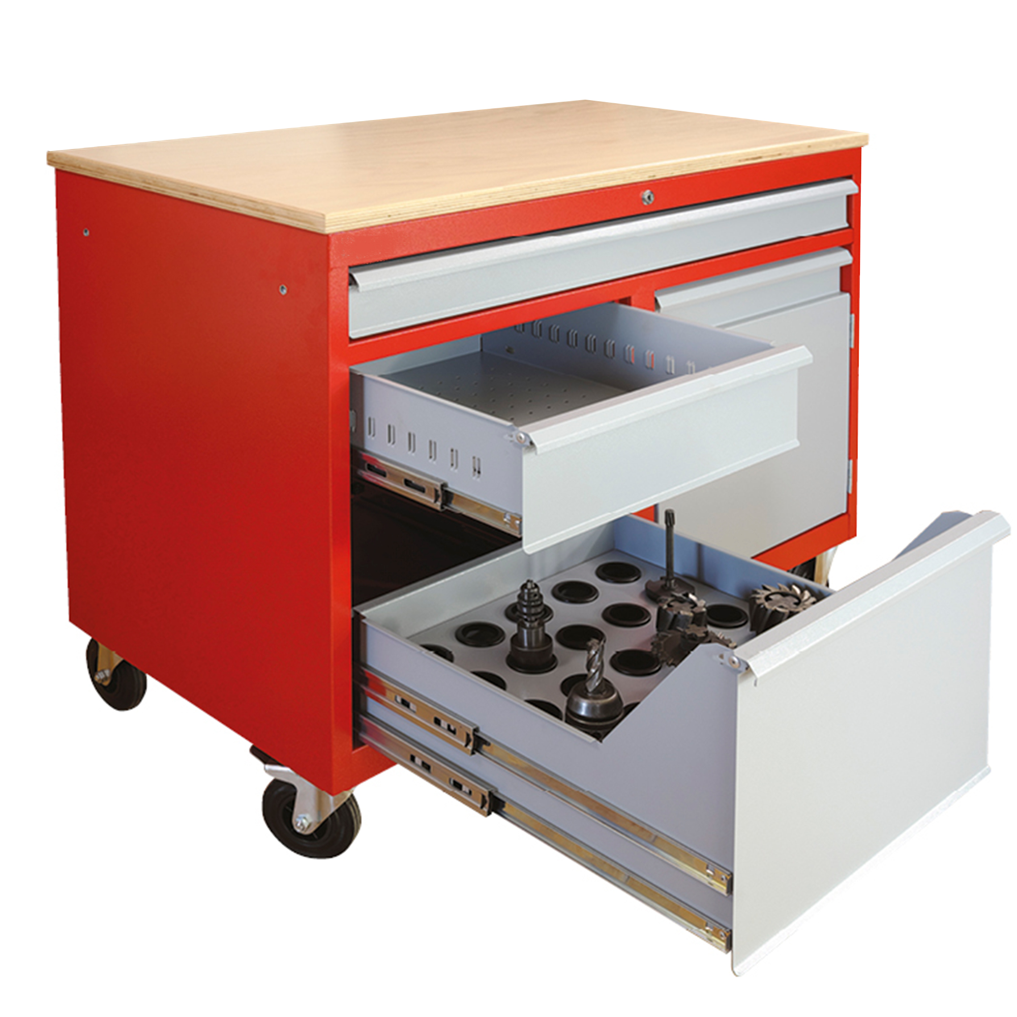 - Kovový dielenský pracovný stôl na NC Frézy na kolieskach DENNER, RAL 3000/7001