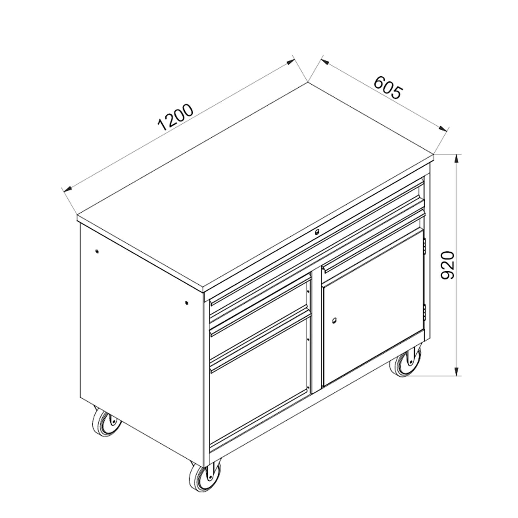 | 920 mm | 1120 mm | 605 mm | 90 kg |