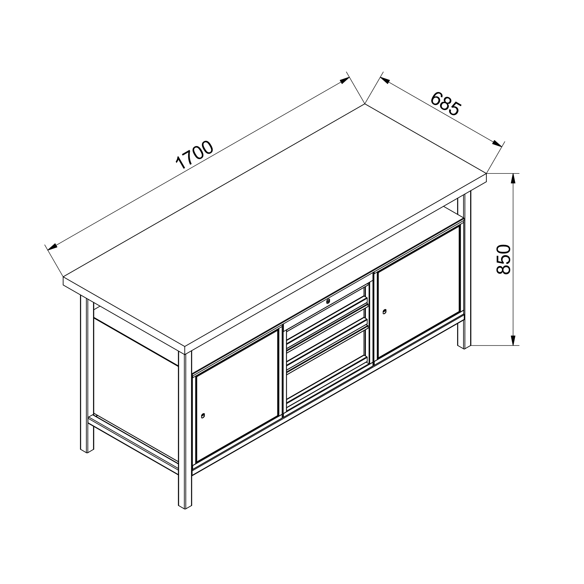 Kovový dielenský pracovný stôl so zásuvkami a skrinkou, 1700 mm-01