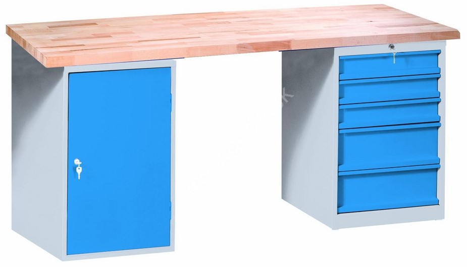 - Kovový dielenský pracovný stôl VARIANT 1700, so zásuvkami a skrinkou D2Z5, RAL 7035/5015