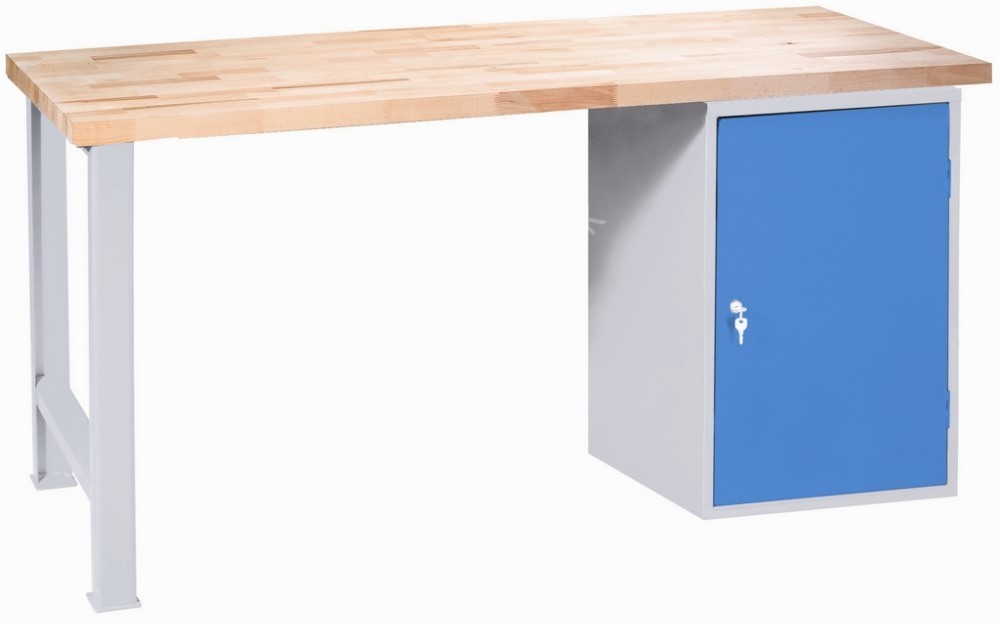 Kovový dielenský pracovný stôl VARIANT 2000, so skrinkou D2, RAL 7035/5015