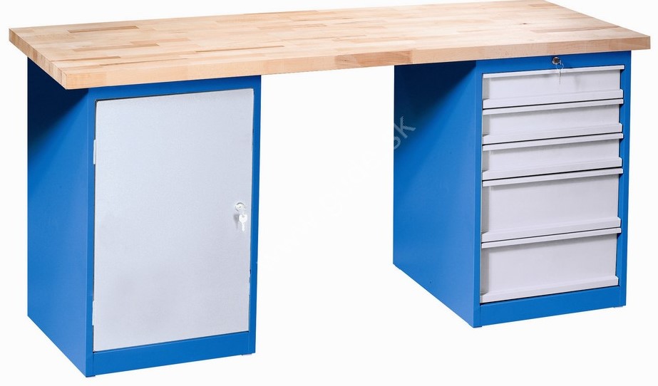 - Kovový dielenský pracovný stôl VARIANT 2000, so zásuvkami a skrinkou D2Z5, RAL 5015/7001