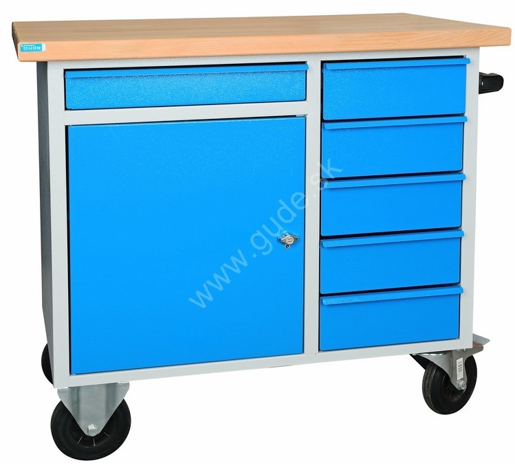 - Kovový pracovný stôl so zásuvkami a skrinkou na kolieskach ROTINO, RAL 7035/5015