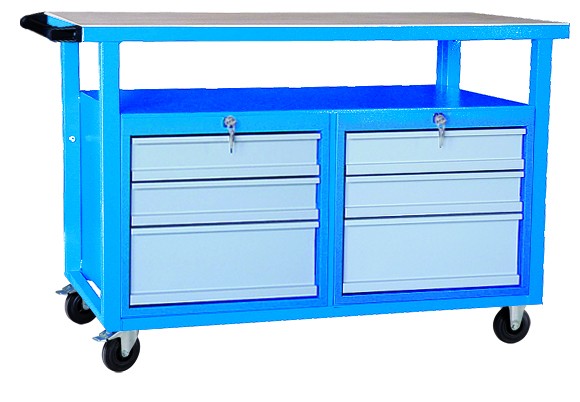 - Kovový pracovný stôl so zásuvkami na kolieskach 1200, RAL 5015/7001, P1200SS