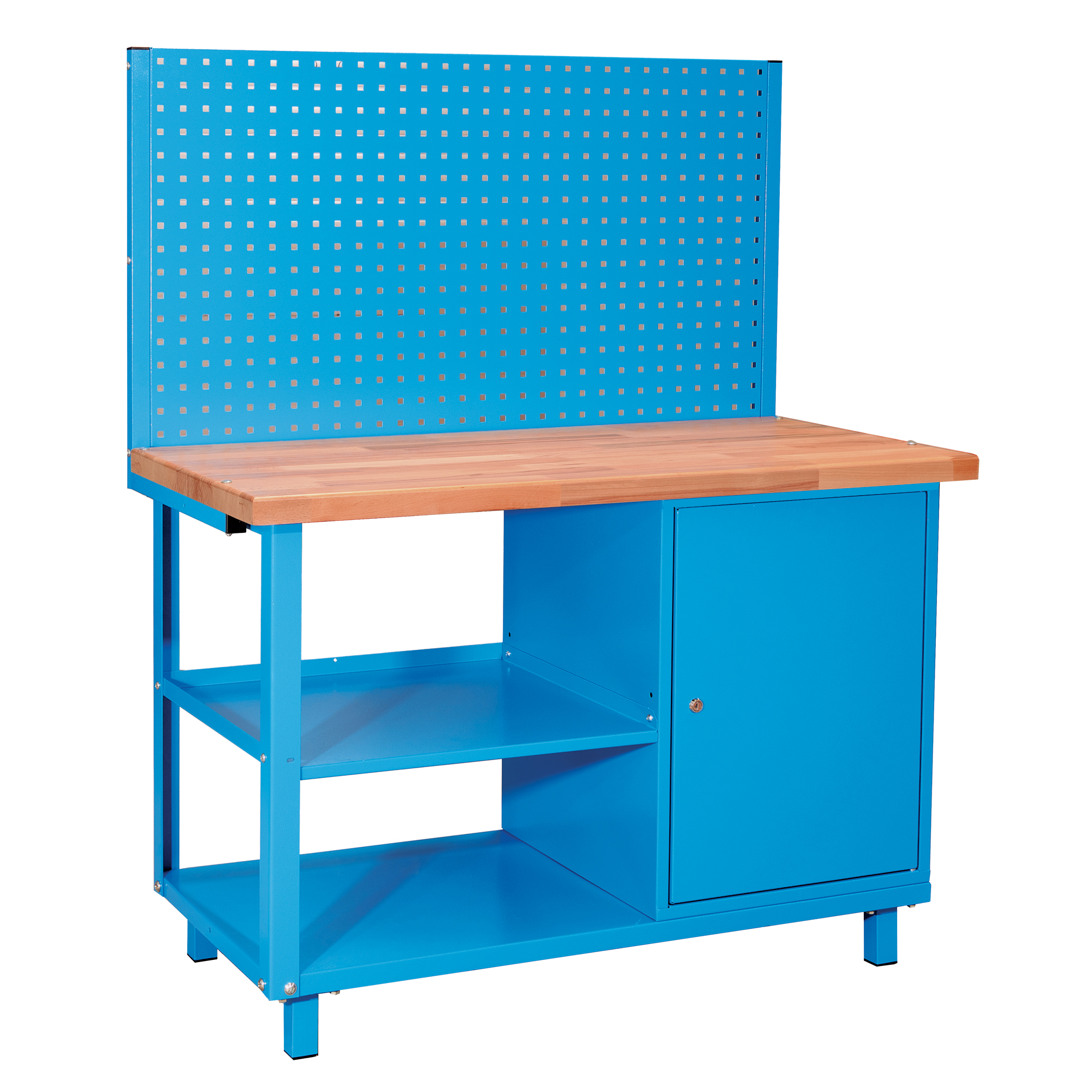 - Mobilné pracovisko KASEL s perforovaným panelom, skrinkou a kolieskami, 1200 mm RAL 5015