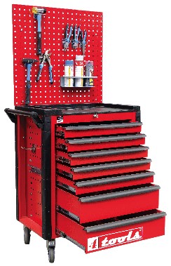 Perforovaný panel na náradie je vyrobený z kvalitného oceľového plechu 0,8 mm. Je možné ho kombinovať s dielenským vozíkom 4 TOLLS s obj. číslom 400676 a 400677.